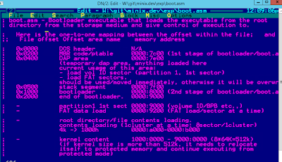 Before testing the rest of the 2nd stage bootloader, i decided to review the code again and found many bugs which I fixed. This apparently introduced some error as I can no longer see the very first string printed upon jumping to 2nd stage bootloader code. It turns out that the MBR size overblew as 1st stage bootloader coded exceeded 512-64 size. Once fixed that issue here is the resulting screen (below). Apparently, the 2nd stage bootloader code did not find the expmini.exe file it was searching from root directory. So time to debug!